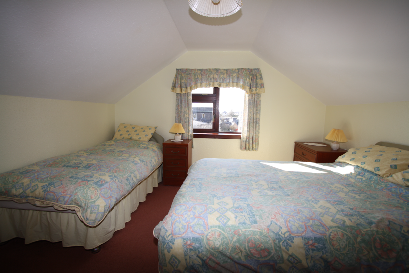 On the first floor, the Daffodil room has a double bed and one single bed. It also has a wash basin and wardrobe.